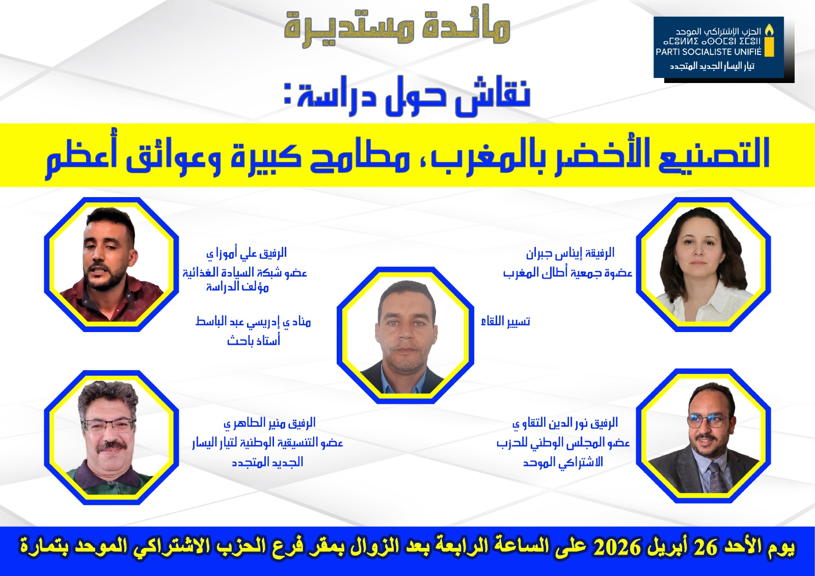 شكّل هذا اللقاء محطة تنظيمية هامة، حملت رسالة واضحة تعكس الثقة الكبيرة التي يحظى بها السيد يوسف منضور داخل هياكل الحزب، وتثمّن مجهوداته في تأطير العمل الحزبي وتقوية حضوره الميداني بالإقليم.....التفاصيل
