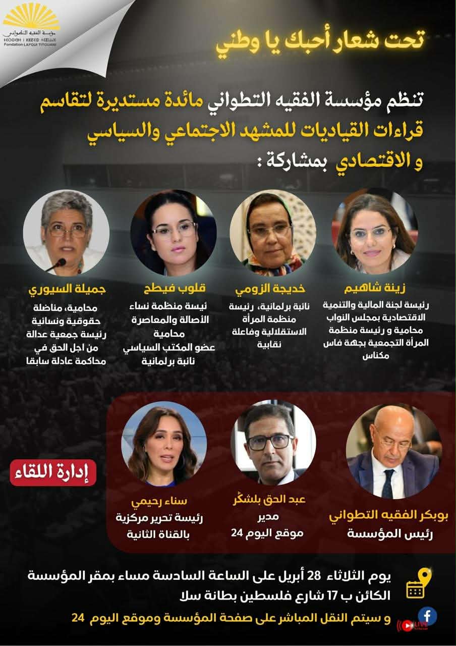 مؤسسة الفقيه التطواني تستضيف " القيادات النسائية تقرأ اللحظة السياسية: أي موقع، أي تأثير وأي أفق؟ "